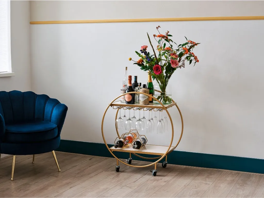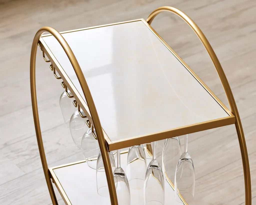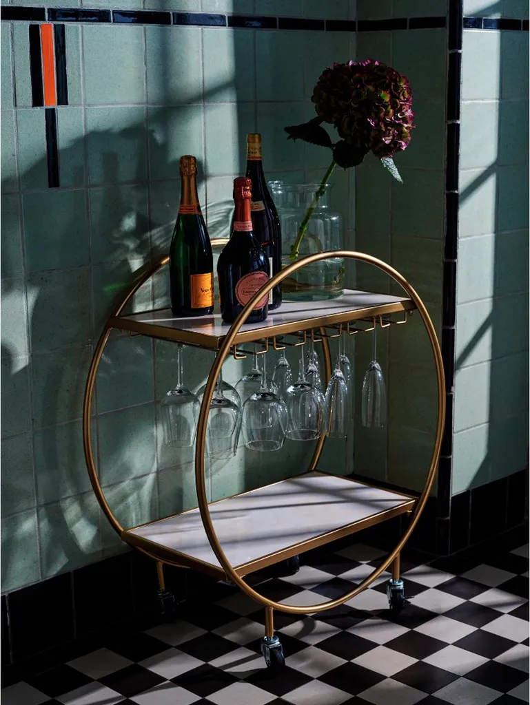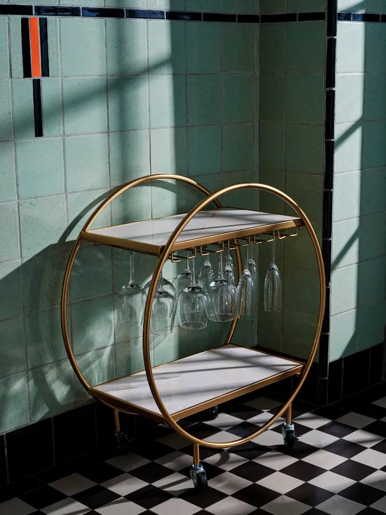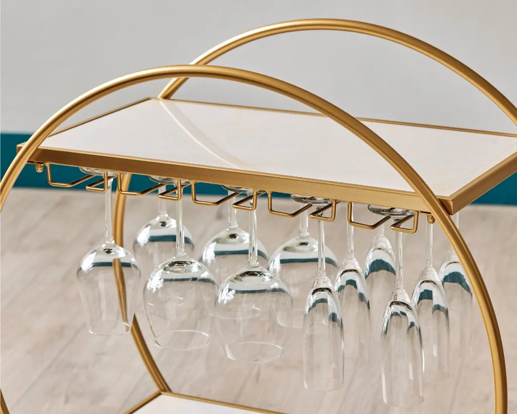 KANDR Barwagen – Weintisch – Servierwagen – Servierwagen – Küchenwagen – Auf Rollen – Rund – Gold