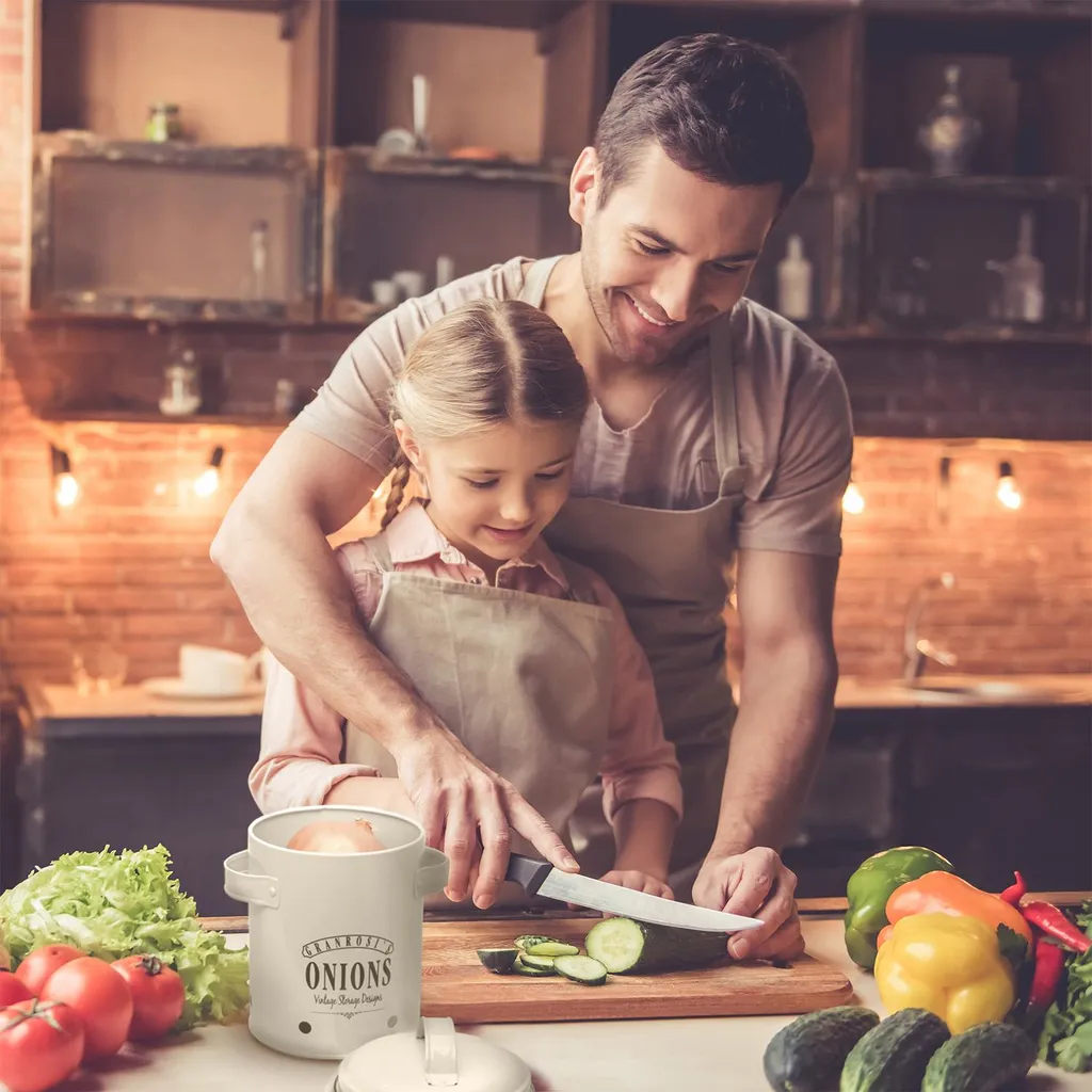 Klarstein Granrosi Iowa Zwiebeltopf Zwiebel-Vorratsdose Zwiebelbox Zwiebelbehälter , Emaille-Stahlblech , Ca. 17 X 22,5 X 14 Cm (BxHxT) , Rostfrei , Lüftungsöffnungen , Füllmenge: Ca. 1,6 Kg Zwiebeln , Seitengriffe , Creme