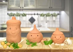 Mambocat 3tlg. Terrakotta-Töpfe Set Knoblauchtopf + Zwiebeltopf + Kartoffeltopf Vorrats-Dosen