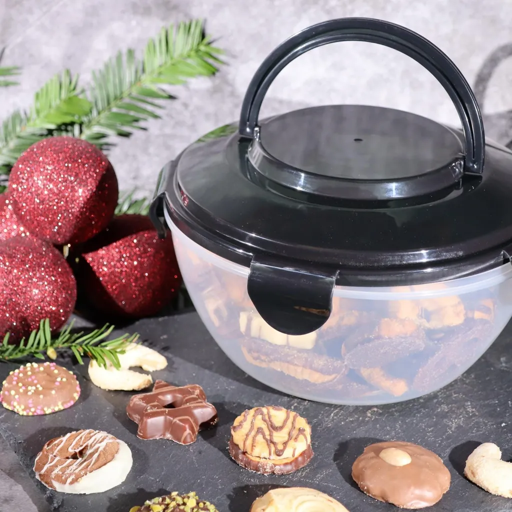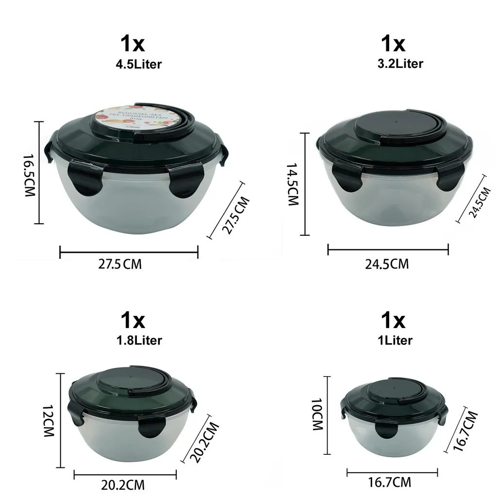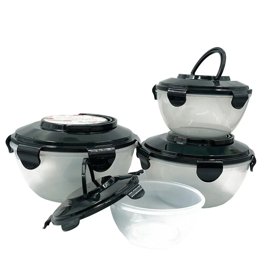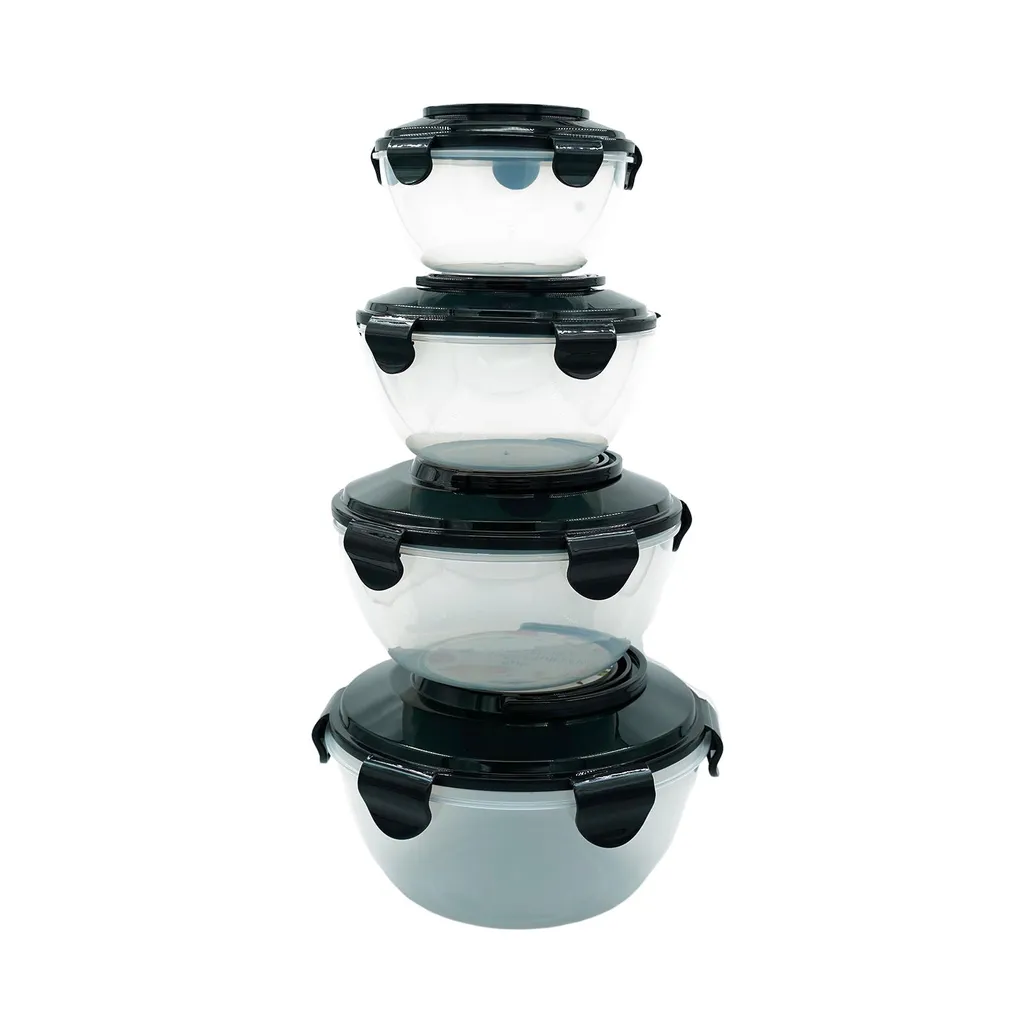 PLENTYFY Vorratsdosen 8 Teilig – Vorratsdosen Set Rund Mit Deckel Vorratsbehälter – Schwarz Luftdicht & Auslaufsicher Vorratsgläser Set Salatschüssel Mit Tragegriff