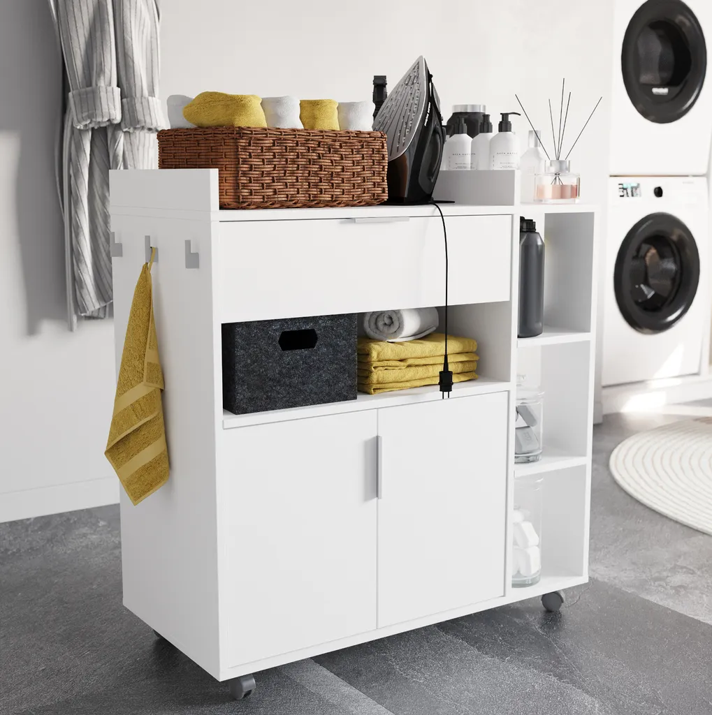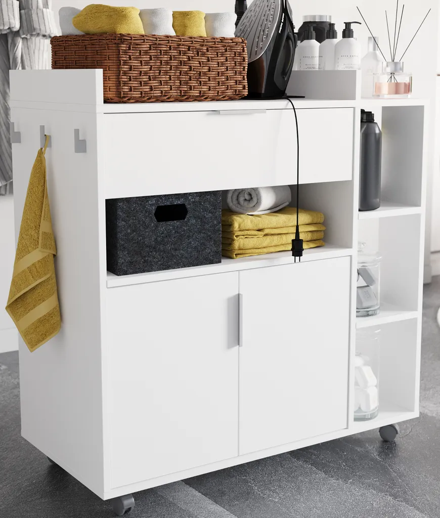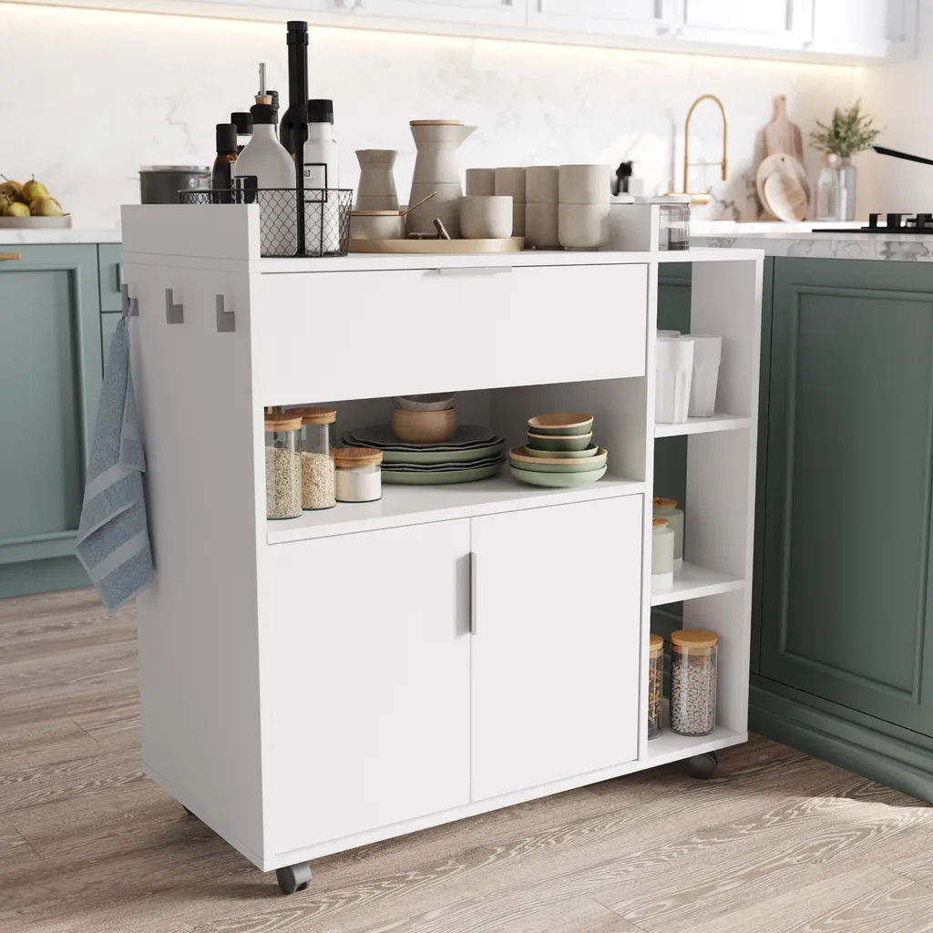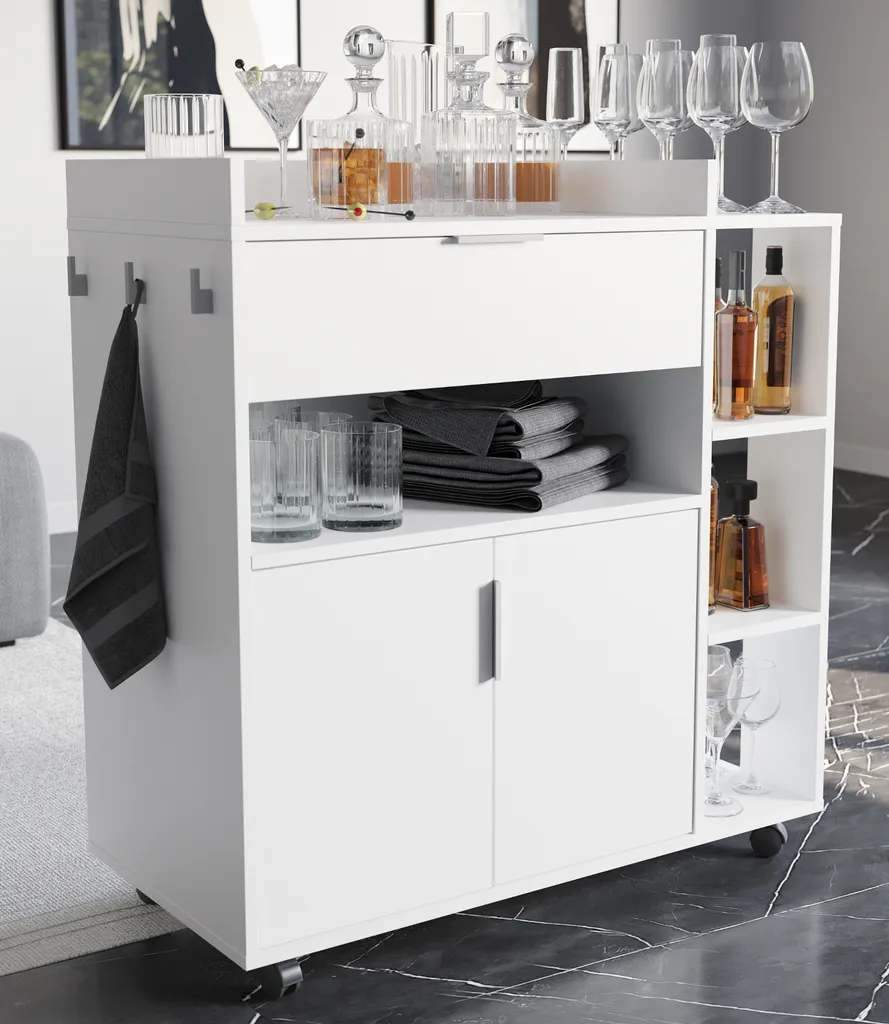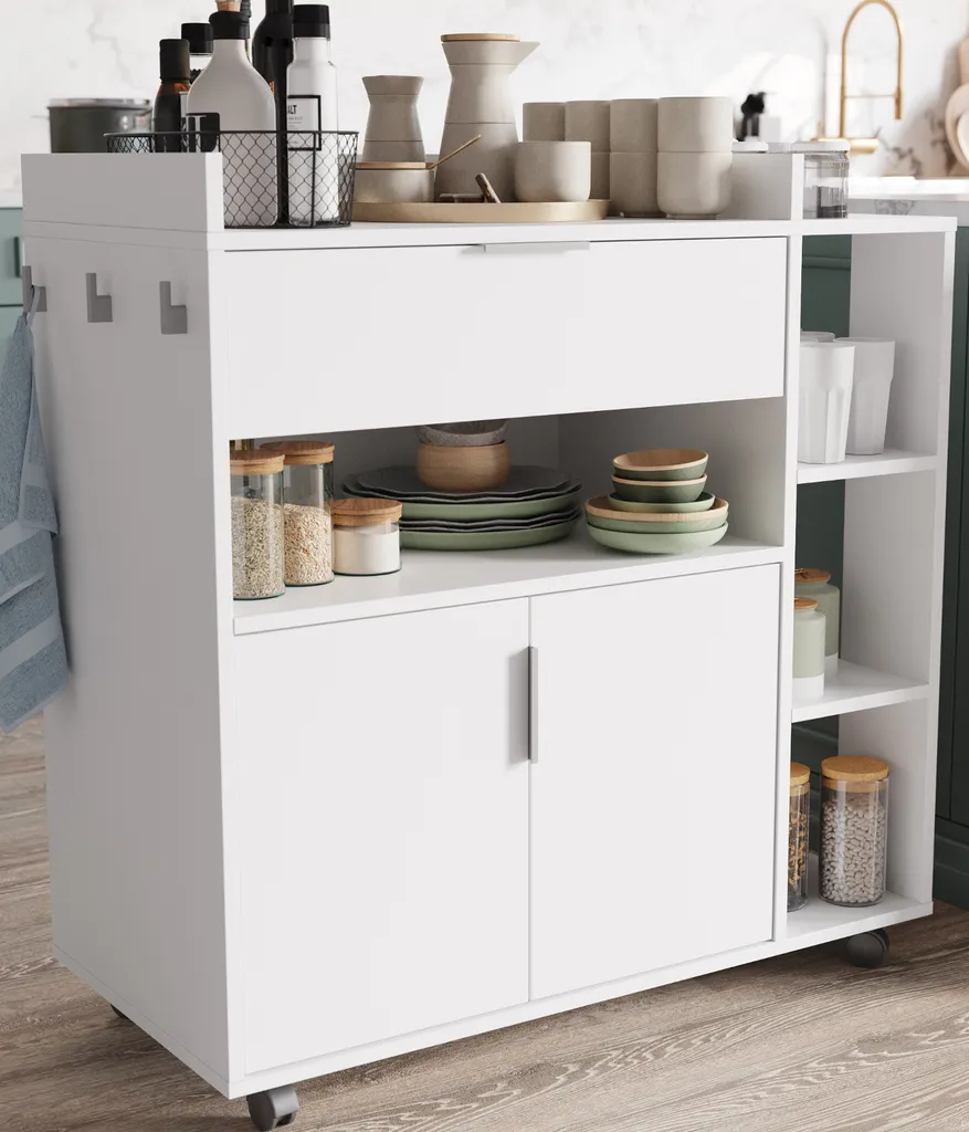 Servierwagen „Karl“ In Weiß Universal Haushaltswagen Auf Rollen Mit Vielen Einsatzmöglichkeiten