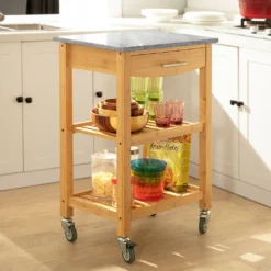 SoBuy Küchenwagen Servierwagen Küchenschrank Mit Flaschenablagen Und Schublade FKW45-WN