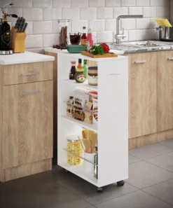 VCM Küchenwagen Servierwagen Rollwagen Nischenschrank Rollbar Rollen Tusal Schublade Weiß