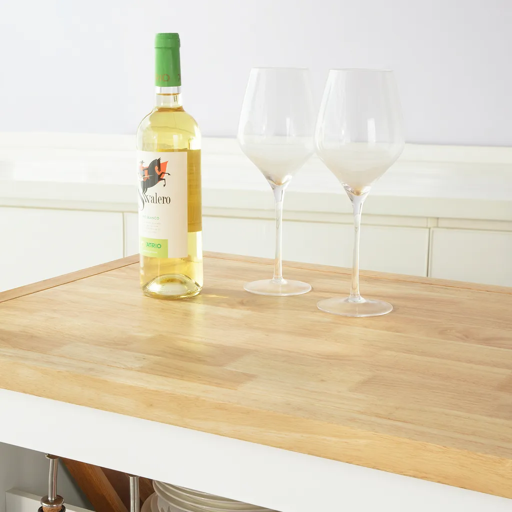 SoBuy FKW107-WN Design Küchenwagen Mit Arbeitsplatte Kücheninsel Küchenschrank Rollwagen Sideboard Auf Rollen Weiß-Natur BHT Ca.: 110x91x55cm