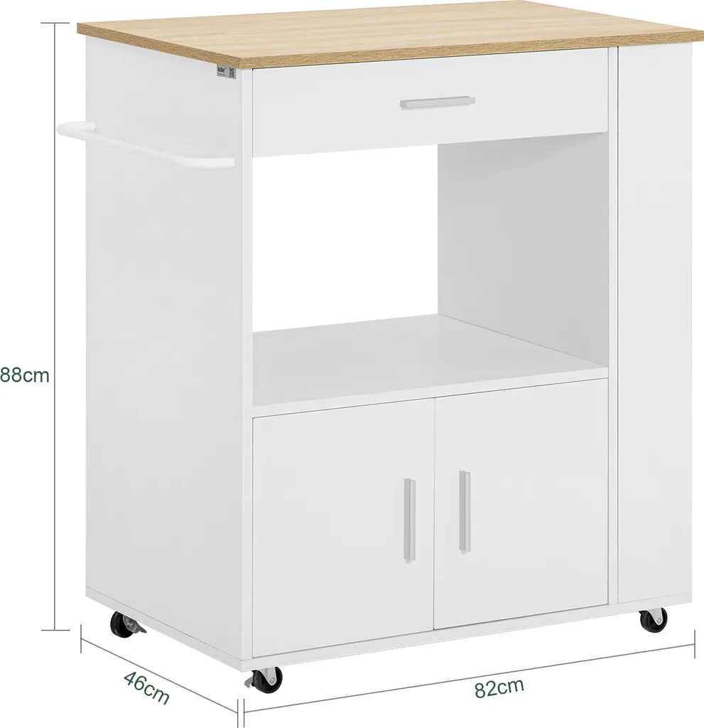 SoBuy FKW113-WN Servierwagen Küchenwagen Kücheninsel Küchenschrank Rollwagen Küchentrolley Mikrowellenschrank Küchenrollwagen Weiß BHT Ca.: 75x83x46cm