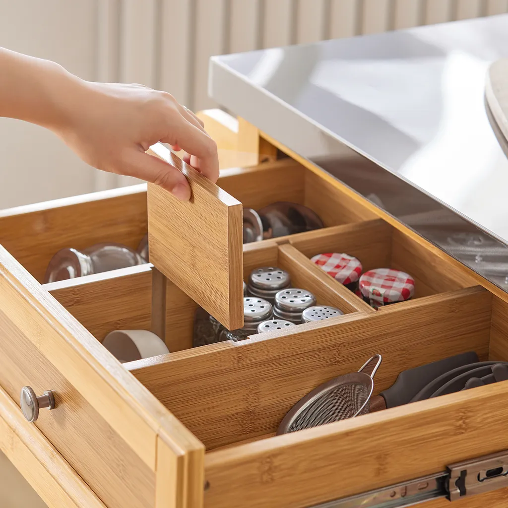 SoBuy FKW70-N Küchenwagen Servierwagen Kücheninsel Küchenschrank Aus Bambus Mit Edelstahlarbeitsplatte BHT Ca.: 115x92x46cm