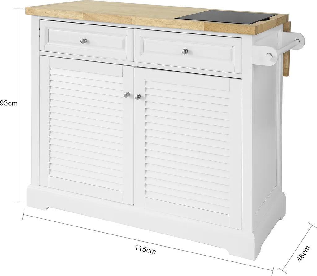SoBuy FKW84-WN Kücheninsel Küchenwagen Mit Erweiterbarer Arbeitsplatte Küchenschrank Servierwagen Sideboard Auf Rollen Weiß