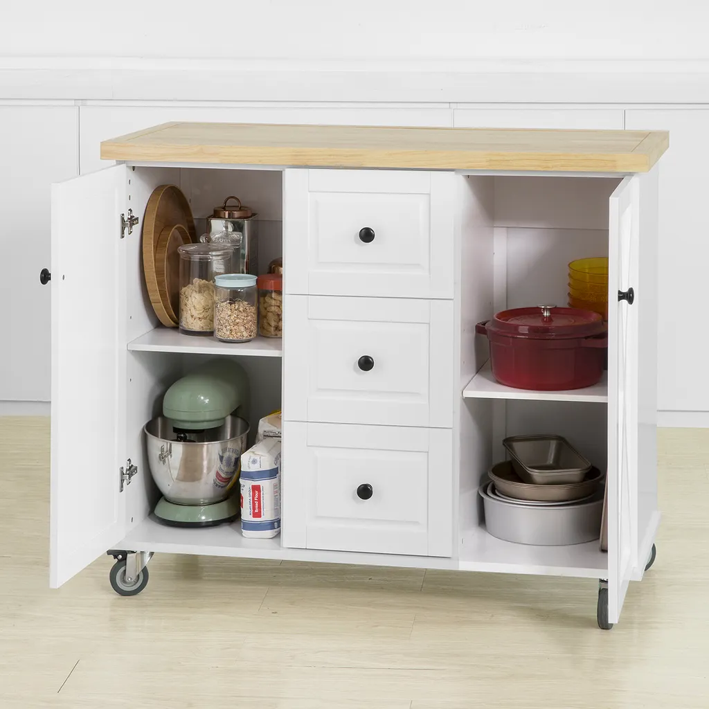 SoBuy FKW96-WN Kücheninsel Mit Arbeitsplatte Küchenwagen Mit 2 Türen Küchenschrank Mit 3 Schubladen Sideboard Weiß BHT Ca.: 116x93x46cm