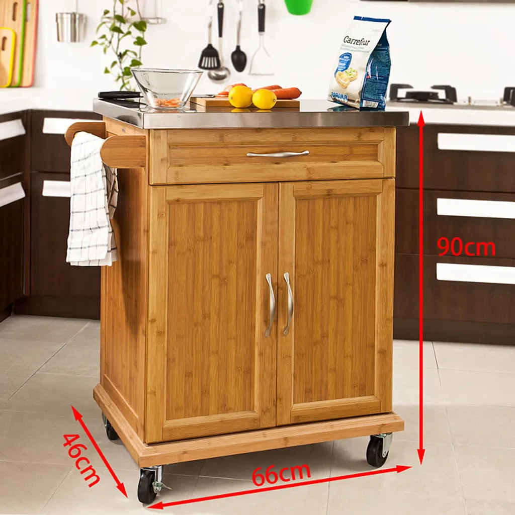 SoBuy Küchenwagen Aus Bambus Mit Edelstahltop, Servierwagen FKW13-N
