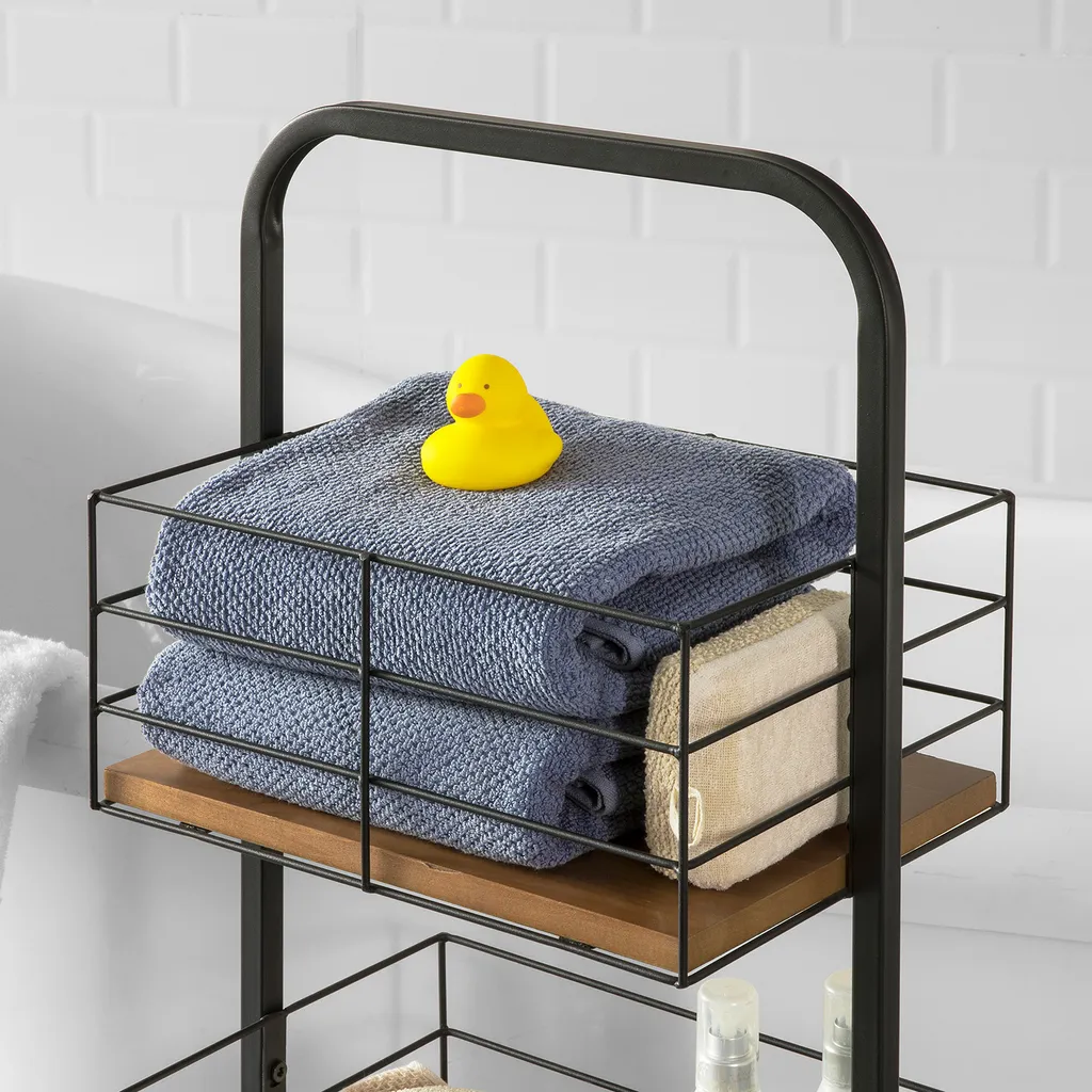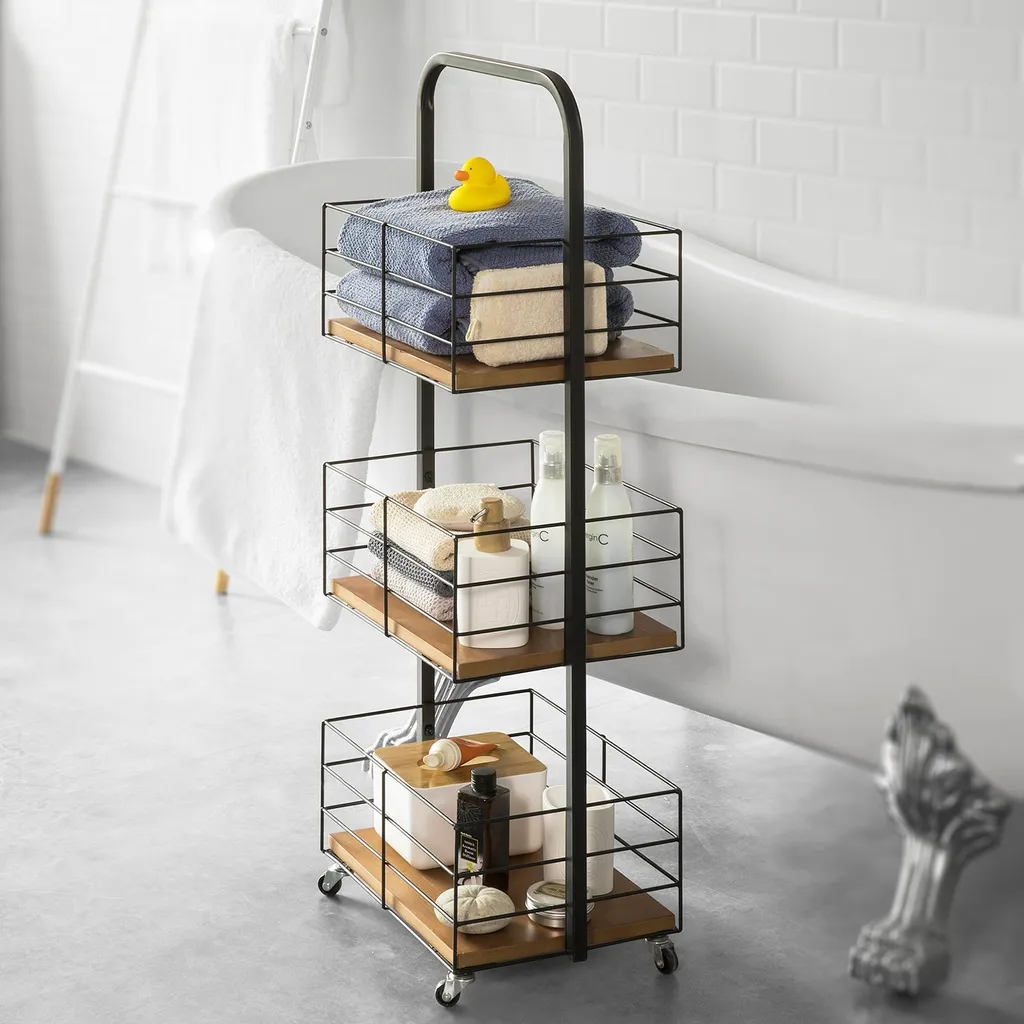 SoBuy NSR06-N Rollregal Mit 3 Körben Bad Wagen Badregal Küchenregal Rollbar Standregal Mit Griff Rollwagen Metall