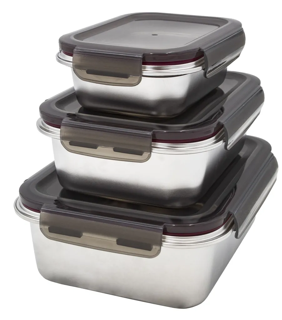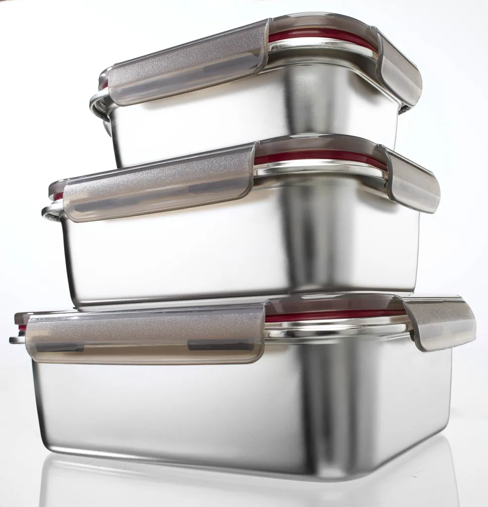 Steuber Edelstahl Frischhaltedose 3er Set, Luftdichter Klickdeckel, Backofengeeignet