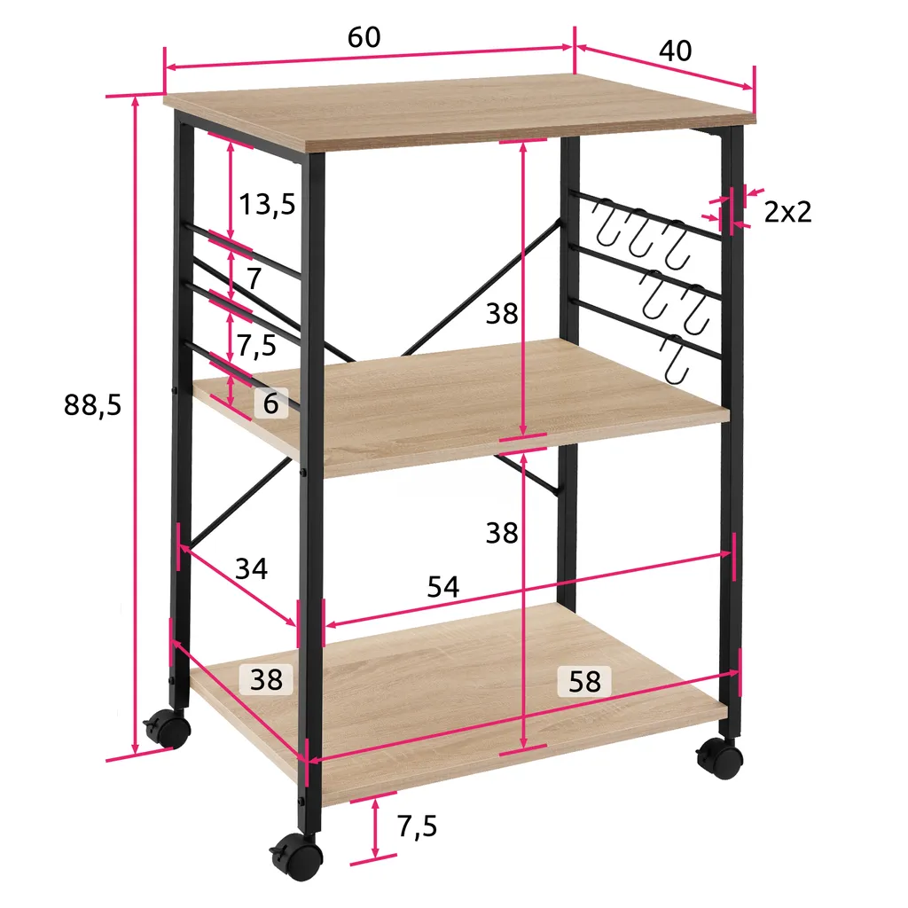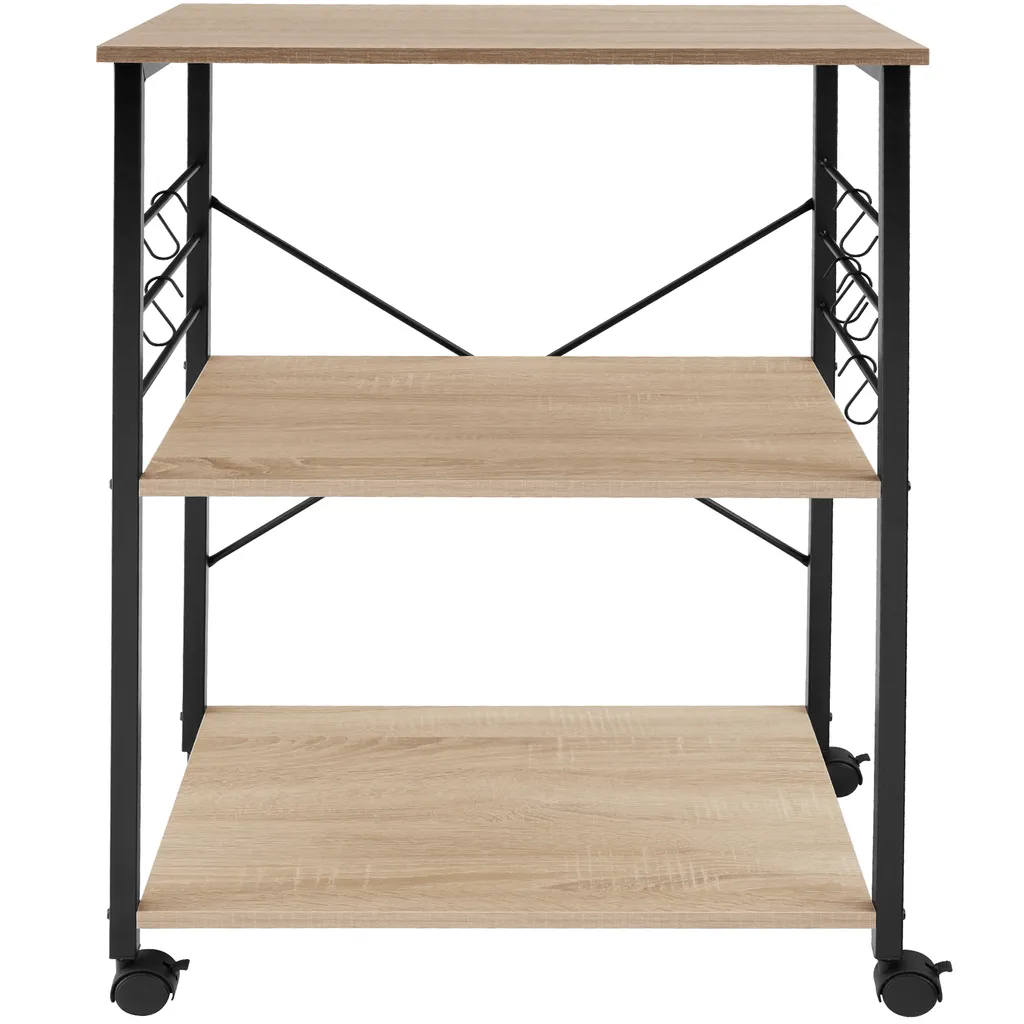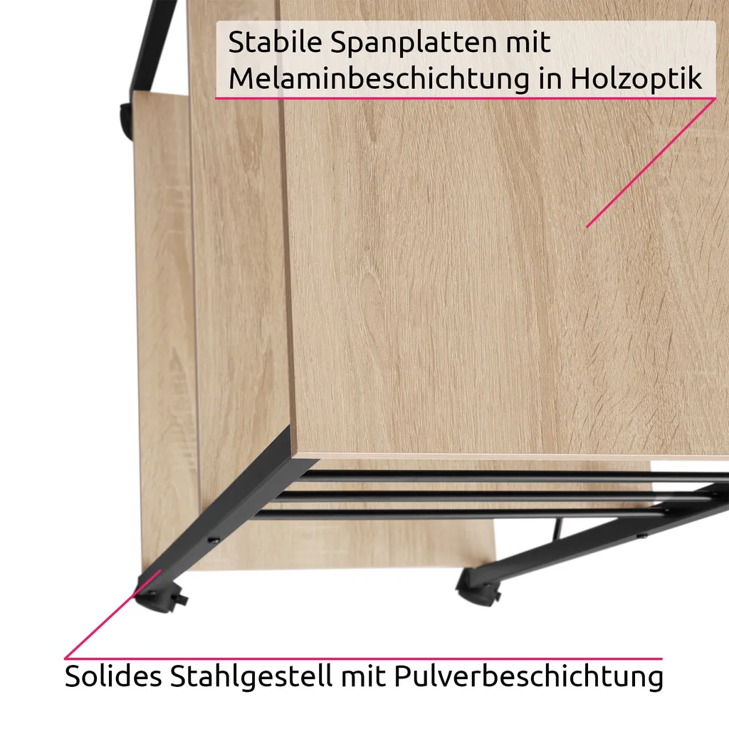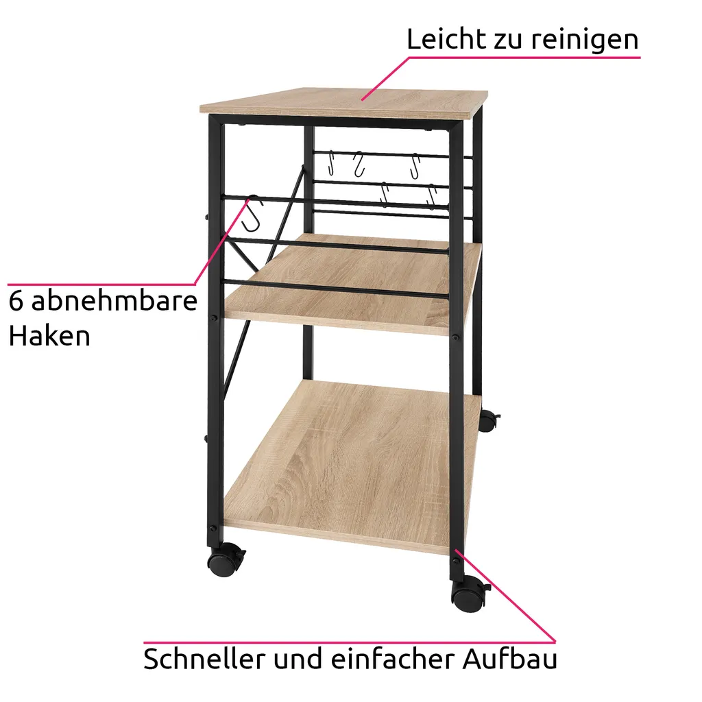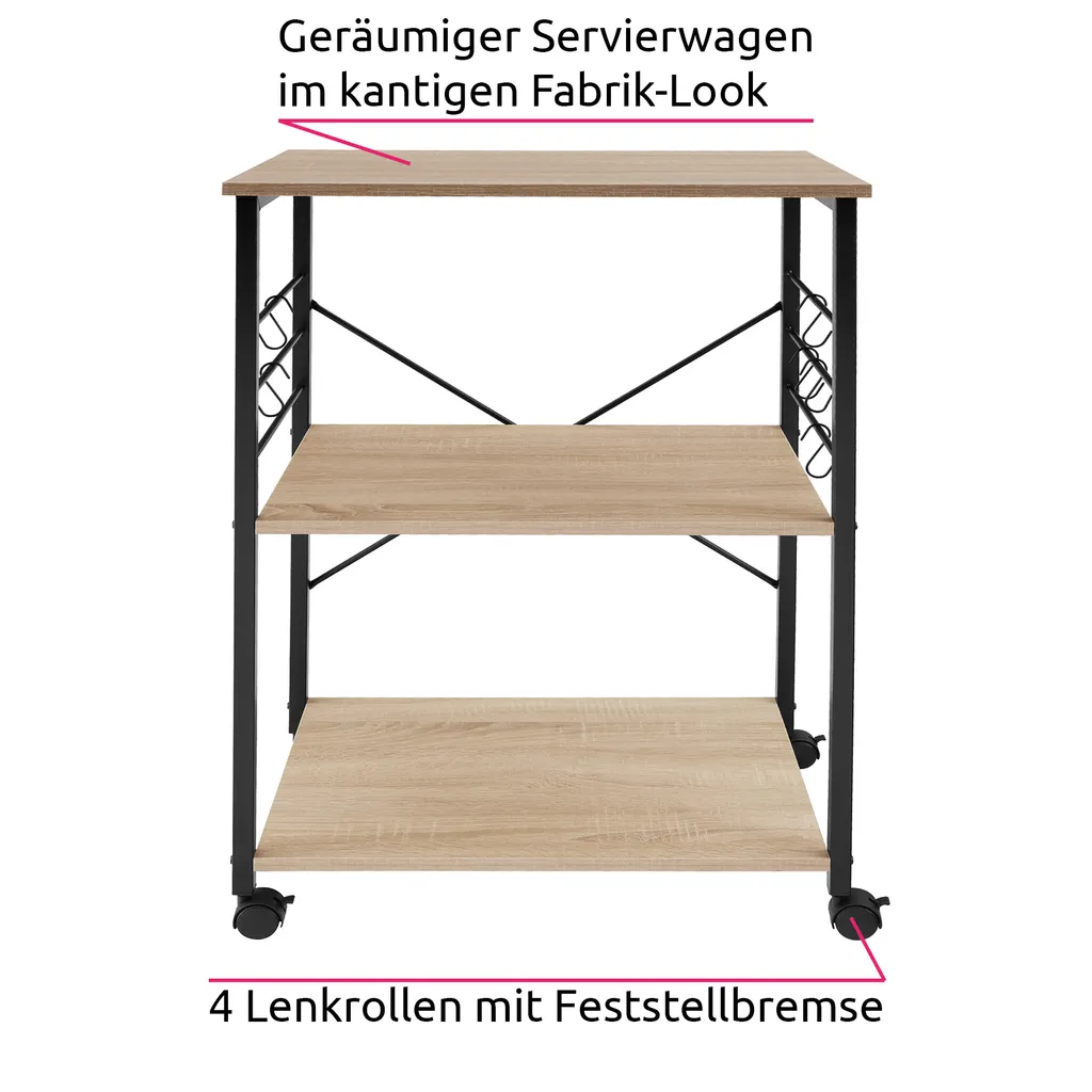 Tectake Servierwagen Rugby 65,5×45,5×88,5cm – Industrial Holz Hell, Eiche Sonoma
